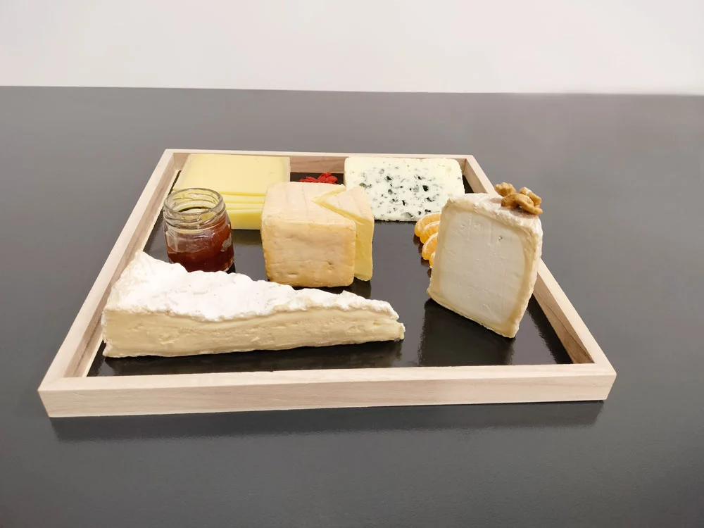 Un plateau équilibré et rassurant, parfait pour plaire à tous les amateurs de fromage. À accompagner de pain croustillant et d’un bon verre de vin rouge ou blanc !