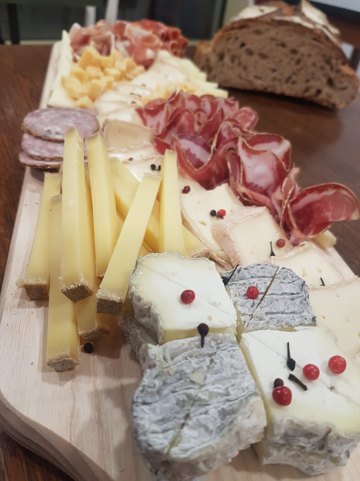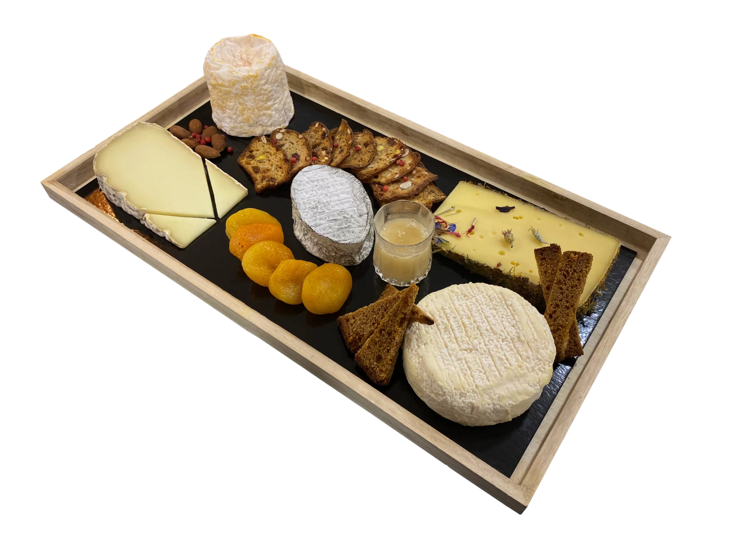 Un plateau qui mélange fromages affinés, charcuteries artisanales et petites douceurs à partager, idéal avec du bon pain et une bouteille de vin !